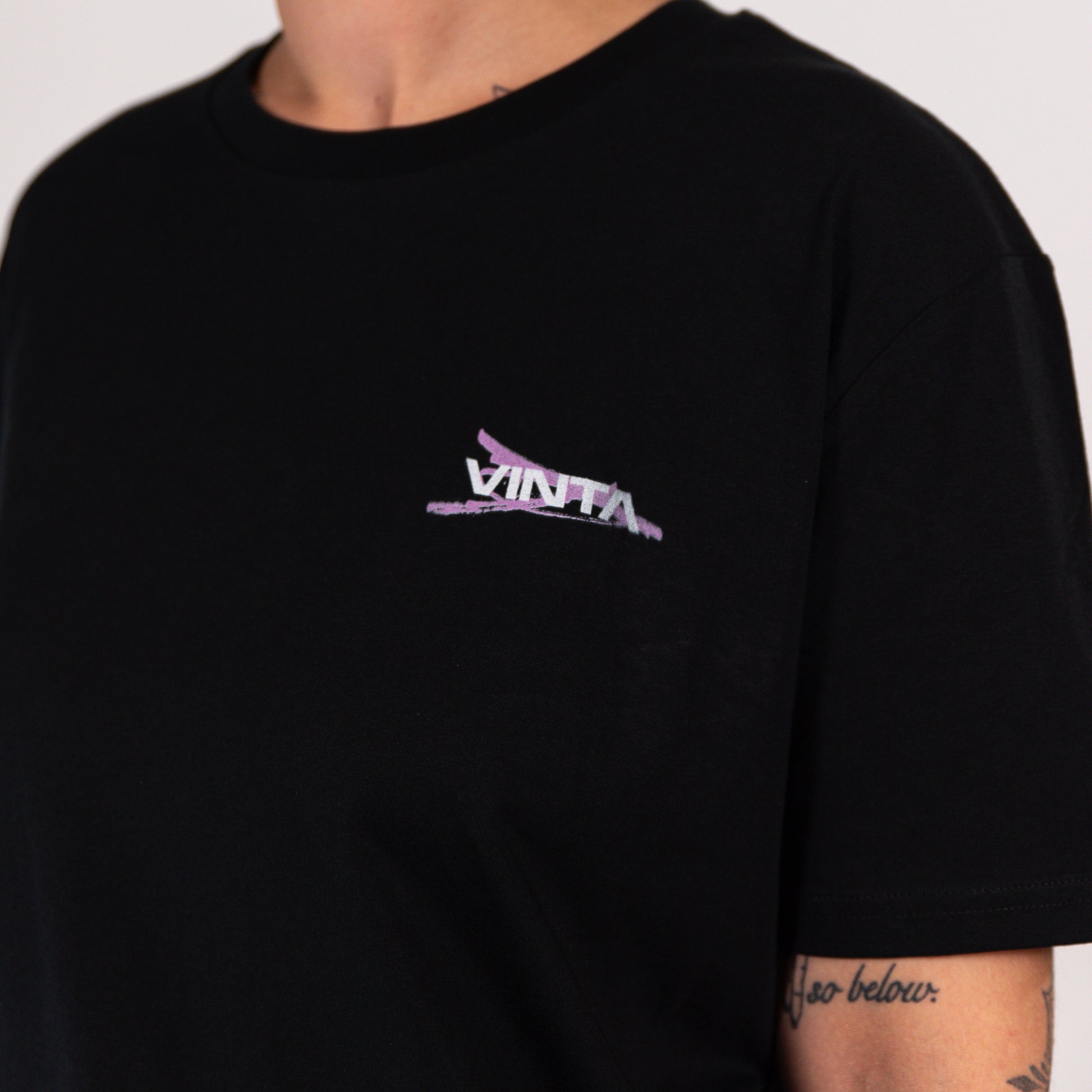 Dieses schwarze Shirt mit großem Backprint und kleinem Schriftzug vorne ist ein richtiger Augenschmeichler. Robin sagt zu diesem Shirt: "Das ist das absolut Beste was ich in meinem Leben je designt habe." Wenn das kein guter Grund ist es zu kaufen.