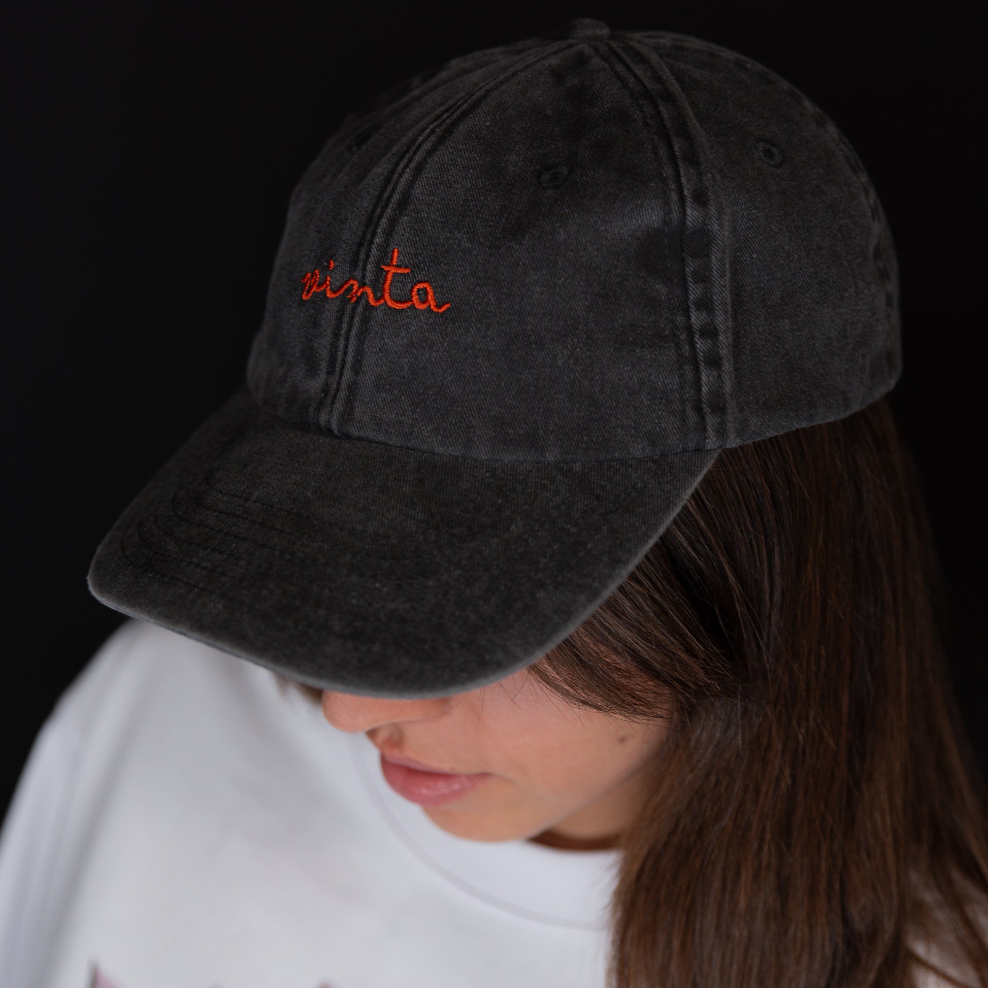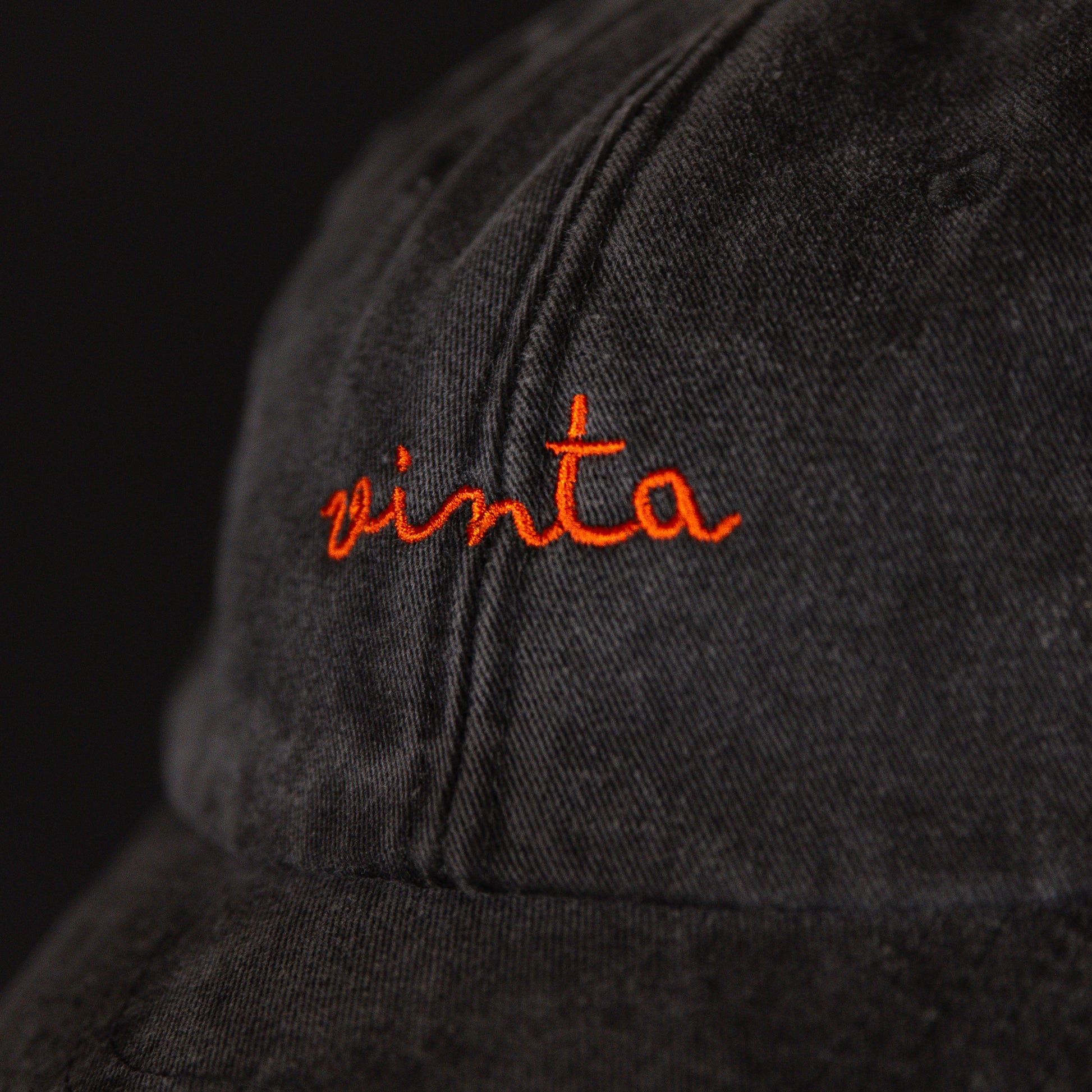 Diese schwarze Cap mit orangenem VINTA Stick ist eins unserer Lieblingsstücke. Sie hat einen leicht ausgewaschenen Vintage Look und passt mit ihrer verstellbaren Größe auf jeden Kopf. Wir haben lange nach einem Anbieter und einer Cap gesucht die unseren Qualitätsansprüchen genügt und sind total froh, dir hiermit eine wirklich hochwertig verarbeitete und wahnsinnig gutaussehende Cap präsentieren zu können.